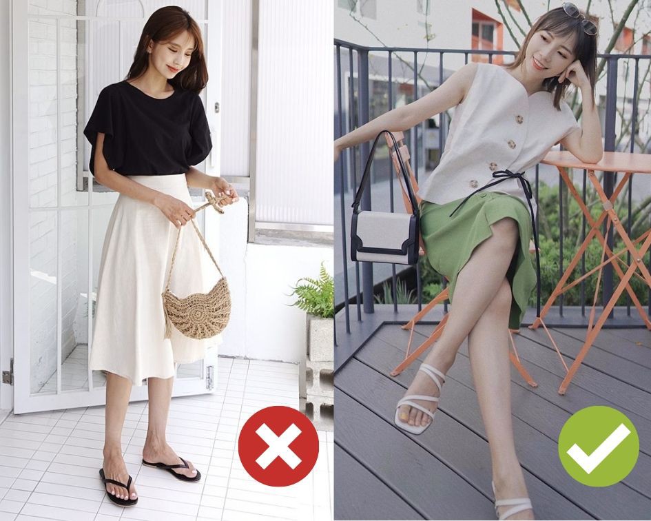 Chúng ta thường nghĩ rằng, chân váy có thể kết hợp với mọi kiểu giày dép nhưng hóa ra lại không hẳn. Ví như nếu bạn mix chân váy với dép xỏ ngón thì công nhận là mát mẻ, thoải mái nhưng đồng thời cũng khiến cả set đồ đang đẹp bỗng biến thành luộm thuộm, bô nhếch. Vậy làm thế nào để không rơi vào tình huống chỉ vì chọn sai giày dép mà phá hỏng cả set đồ, bạn hãy ghim những kiểu giày dép kết hợp cực ngọt với chân váy sau đây.1. Chân váy + sandals đơn giản