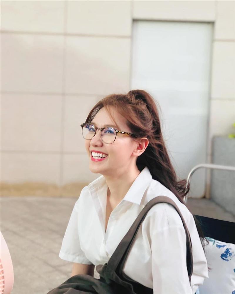 Hari Won trông như nữ sinh cấp 3 khi diện sơ mi trắng, đeo kính và túi vải. Chẳng cần ăn diện cầu kỳ, cô đã hack tuổi thành công khiến bao người mê mẩn.