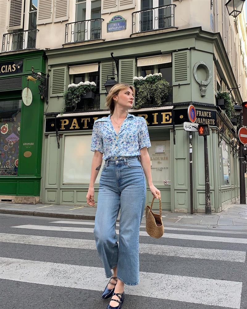 Áo sơ mi cộc tay hợp mix với rất nhiều items, chẳng hạn như chân váy hay quần ống rộng. Tuy nhiên, nếu hỏi về "nửa kia" hoàn hảo nhất của áo sơ mi cộc tay thì chỉ có thể là quần jeans. Combo áo sơ mi cộc tay + quần jeans cũng là công thức "ruột" của gái Pháp. Sự kết hợp này giúp họ có được outfit siêu trẻ trung, có chút cổ điển, lãng mạn mà đầy thanh lịch. Khi diện combo này, gái Pháp không bao giờ quên sơ vin để đảm bảo sự chỉn chu, hiệu quả tôn dáng cho set đồ, đồng thời nâng cấp vẻ sành điệu.