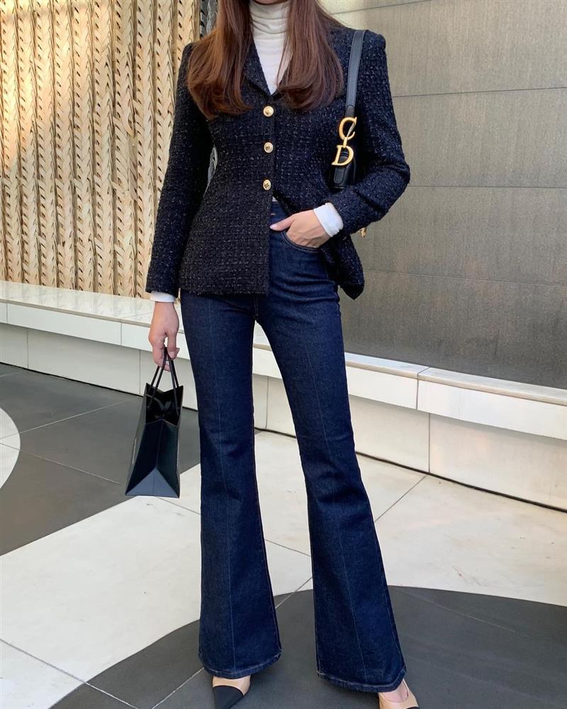 Quần jeans ống loe vẫn có sự trẻ trung, bụi bặm, và cả nét retro nên lại càng thú vị, nổi bật. Kiểu quần độc đáo nhưng nữ tính, không "hầm hố" này còn giúp chị em hoàn thiện những set trang phục thanh lịch, sang chảnh, nhưng không cần phải đau đầu suy nghĩ về cách mix.