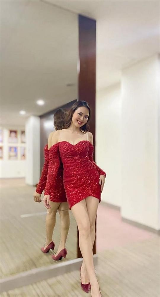 Diện mẫu váy màu đỏ rực rỡ, Hồng Diễm trở nên gợi cảm và tràn đầy sức sống.