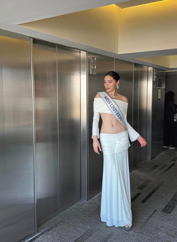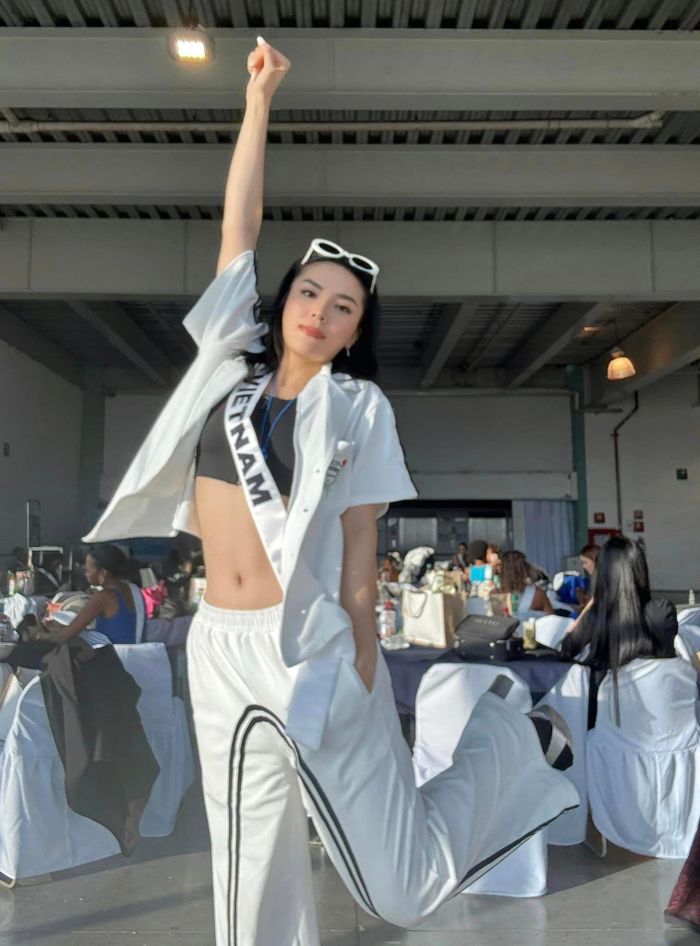 Ba ngày gần đây, thí sinh Miss Universe 2024 miệt mài tập luyện các tiết mục, phần trình diễn cho đêm thi Bán kết và Chung kết. Trong cả ba ngày này, Hoa hậu Kỳ Duyên đều mặc trang phục trắng, những set đồ năng động, thuận lợi cho việc tập luyện nhưng không kém phần thời thượng.