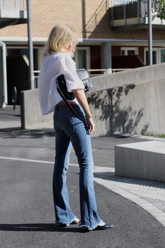 Trước giờ tôi cũng ngại mặc quần ống loe nhưng không ngờ rằng chính thiết kế này lại rất hợp với đôi chân to và thô của mình. Riêng dáng quần với phần hông và đùi ôm lấy cơ thể, phần ống loe nhẹ tạo nên những đường cong chữ S gợi cảm cho người mặc. Phần đùi to của bạn lại vô tình giúp dáng quần ống loe lên phom dễ dàng và đúng dáng hơn, trong khi những đôi chân khẳng khiu thì không thể. Nhưng nhất định phải là quần dài chạm gót, để có thể đi thêm boots/ giày cao gót khi mặc jeans ống loe, bởi nếu lửng lơ lỡ cỡ thì chiếc quần ngay lập tức sẽ "phản chủ" không thương tiếc.