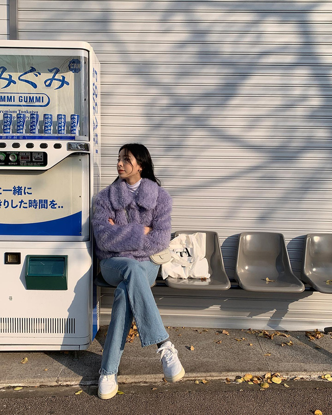 Mẫu áo khoác lông chính là "chìa khóa" tạo nên vẻ sang chảnh cho tổng thể trang phục. Và để bộ đồ trông thời thượng chứ không sến, chị em chỉ đơn giản là kết hợp áo khoác lông với quần jeans, rồi đi sneaker trắng đơn giản.