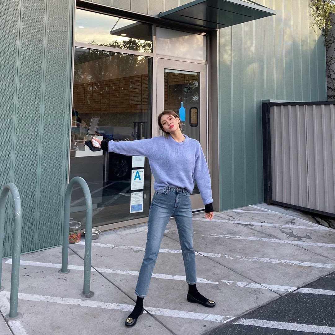 Đen và xanh biển là những màu sắc có thể đem lại sự may mắn, thuận lợi cho những quý cô mang mệnh Mộc. Vừa khéo, hai gam màu trang phục này còn hô biến vẻ ngoài của người mặc thêm lịch sự, phong cách và tràn đầy tự tin. Nếu lo chuyện diện độc gam màu đen khiến vẻ ngoài của bạn trông hơi ủ dột, hắc ám ngày đầu Xuân, bạn có thể chọn áo xanh biển + quần đen; hoặc trang phục xanh biển + giày đen cũng rất ổn.