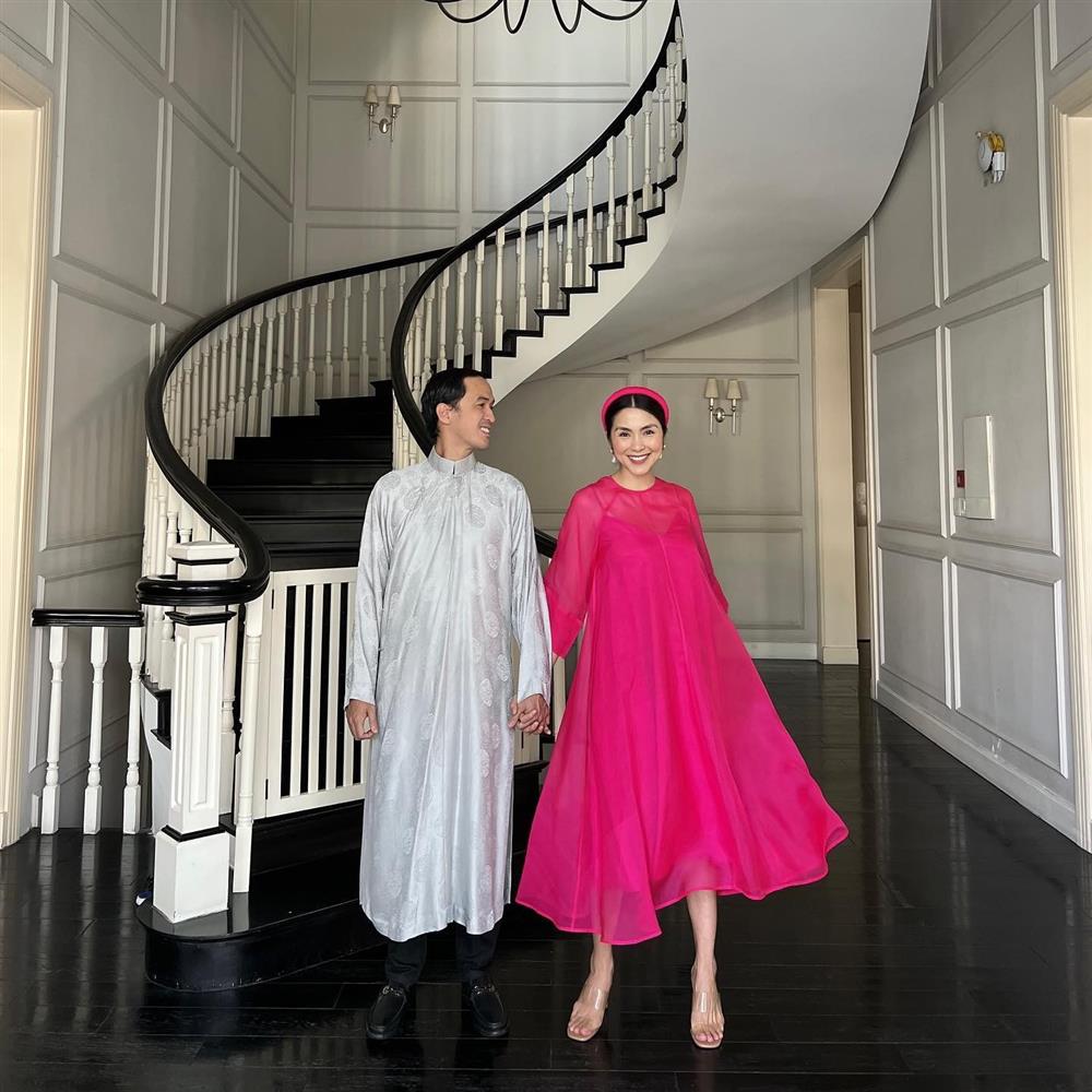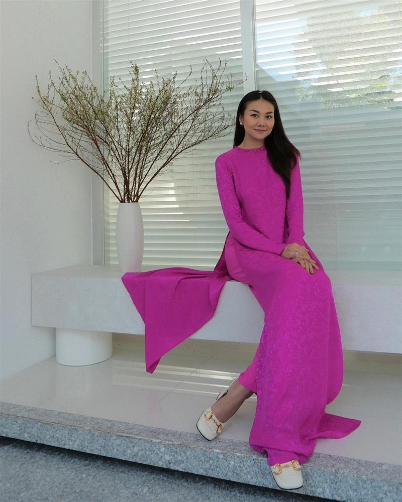 Thanh Hằng chọn tông hồng pha tím ngày khai xuân.