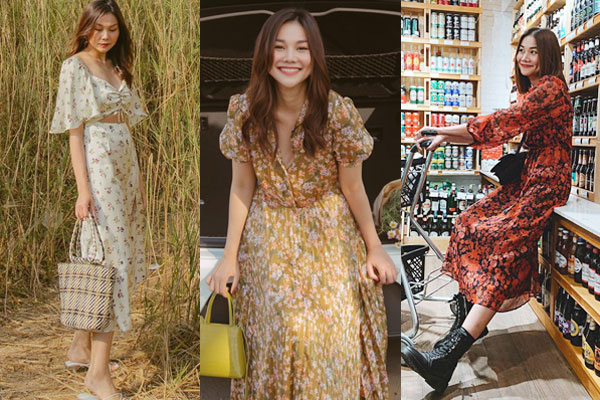 Một chiếc váy hoa đơn giản sẽ giúp bạn tiết kiệm thời gian mỗi khi lên đồ đi chơi hay đi làm. Với các nàng công sở, nên chọn váy hoa nền nã và nhấn nhá bằng phụ kiện giày và túi cùng tone.