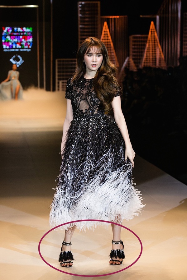 Vẫn biết mình có nhược điểm chân thô vậy mà không ít lần Ngọc Trinh chọn sai giày, khiến bao nhiêu cái xấu lộ ra hết. Những đôi sandals quai mảnh, trong suốt là những thiết kế bạn cần gạt ngay ra khỏi tủ giày nếu không tự tin với đôi chân của mình.