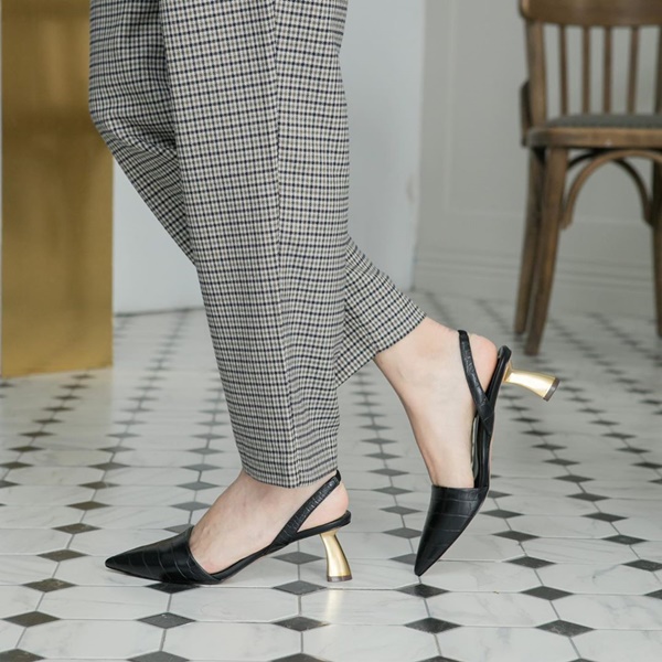Thay vì sandals quai mảnh sang chảnh, nàng chân thô có thể chọn cao gót dáng cơ bản nhưng thêm chi tiết nhấn nhá, những đôi slingback, mulets... Nếu vẫn mê sandals mảnh mai kiêu kỳ thì những thiết kế có phần mũi chụm lại hoặc quai trước to bản sẽ giúp khắc phục kha khá nhược điểm đôi chân.