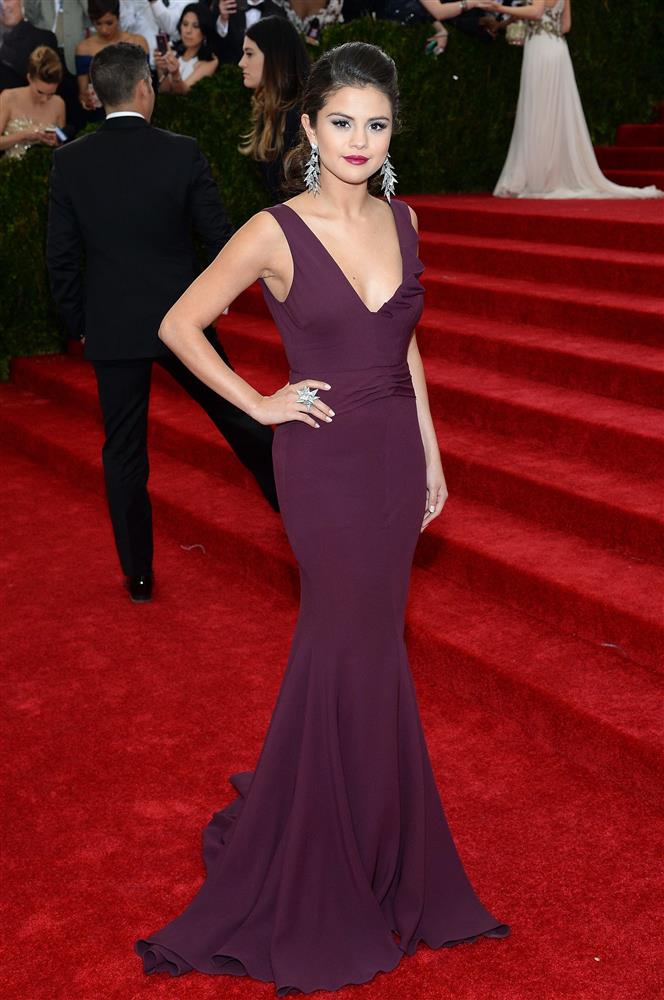 Selena Gomez được khen ngợi là có vẻ đẹp tựa như "tiên giáng trần" trên thảm đỏ Met Gala 2015. Bộ váy cô diện là thiết kế của "bà hoàng váy cưới" Vera Wang. Chiếc đầm với chi tiết cut-out đã tôn lên thân hình quyến rũ, đầy sức sống của Selena Gomez, mà vẫn đem đến cho cô nét nhẹ nhàng, thanh tao, xen lẫn vẻ sang trọng. Kiểu tóc không chỉ hợp với bộ váy mà còn tôn lên trọn vẹn nhan sắc ngọt ngào, xinh đẹp của "công chúa Disney".
