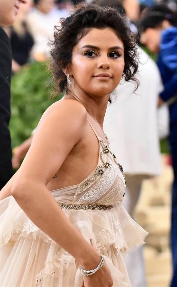 Thế nhưng đẹp mãi thì cũng sẽ có lúc sẩy chân mất điểm phong cách, và Selena Gomez tại Met Gala năm 2018 đã khiến dân tình phải "phát hoảng" vì lựa chọn thời trang khó hiểu. Selena Gomez diện một chiếc đầm khá lùng bùng, dìm dáng đến từ Coach, chọn kiểu tóc rối bời, phá cách nhưng không tôn visual, và thảm họa nhất chính là layout trang điểm bợt bạt, cùng làn da rám nắng loang lổ. Dù không đẹp mãn nhãn nhưng chẳng thể phủ nhận, hình ảnh của Selena Gomez trên thảm đỏ Met Gala năm đó rất "viral" và để lại ấn tượng mạnh mẽ cho đến tận bây giờ.
