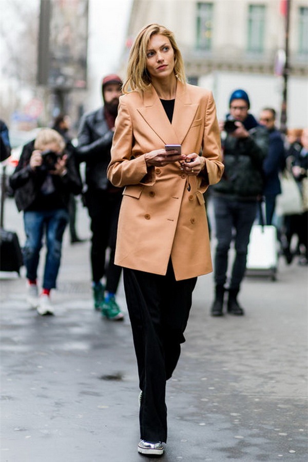 Khi bạn chỉn chu chọn quần áo để đi làm công sở, có một lời khuyên rằng bạn nên chọn những gam màu trung tính vì khi chúng kết hợp với nhau sẽ khiến bạn trở nên thu hút hơn rất nhiều. Áo khoác blazer lạc đà với chiếc quần đen ống suông cổ điển cũng là một gợi ý hấp dẫn cho bạn.