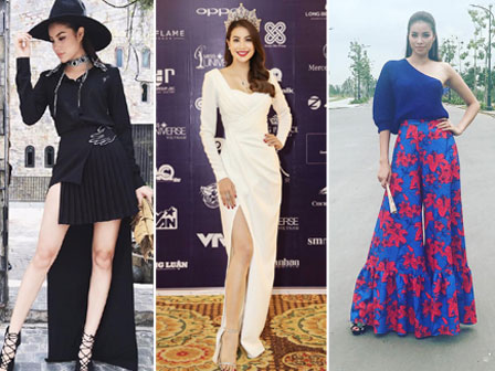 Với vai trò là host của Hoa hậu Hoàn vũ Việt Nam 2017, phong cách của Pham Hương thể hiện đúng tiêu chí nhan sắc của một Hoa hậu. Nàng "bông hậu" càng chứng tỏ độ hot của mình khi liên tục phủ sóng báo chí với những bộ cánh đẹp mê hồn cùng thần thái cao sang, kiêu sa hết mức. Nếu Như The Face là sự nổi loạt, biến hóa đa dạng thì tại HHHV Việt Nam lại là sự cao sang, lộng lẫy, tinh tế lấn át cả dàn thí sinh lẫn các người đẹp khác tại cuộc thi năm nay.