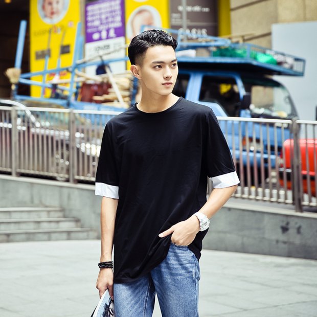 Phong cách tối giản gồm quần kaki và áo phông trơn được anh tạo điểm nhấn bằng đồng hồ thể thao.