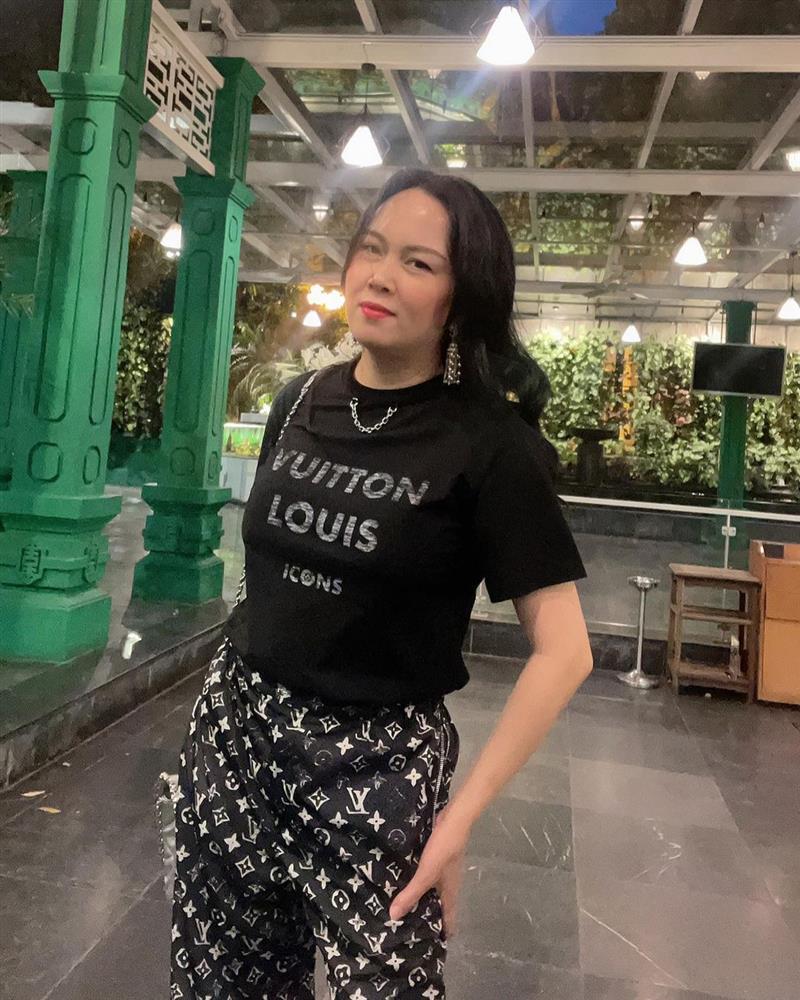 Trong hình ảnh mới đây, Phượng Chanel lên đồ trẻ trung với áo thun và quần jogger. So với khi xưa, bộ cánh này có phần tiết chế hơn về họa tiết và màu sắc nhưng vẫn không hoàn toàn phù hợp với với lứa tuổi.