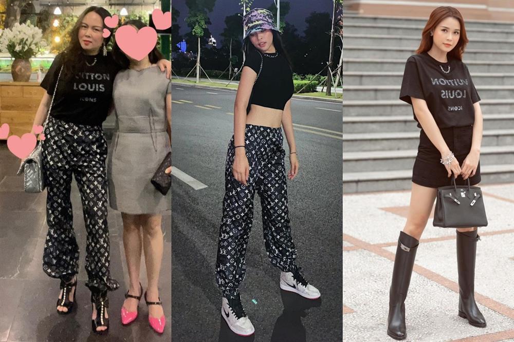 Mẫu áo thun mà Phượng Chanel đã diện cũng là thiết kế đến từ nhà mốt Louis Vuitton. Mẫu áo này cũng từng được Sam chọn diện, khi đó cô mix cùng quần short và boots cao cổ thời thượng.