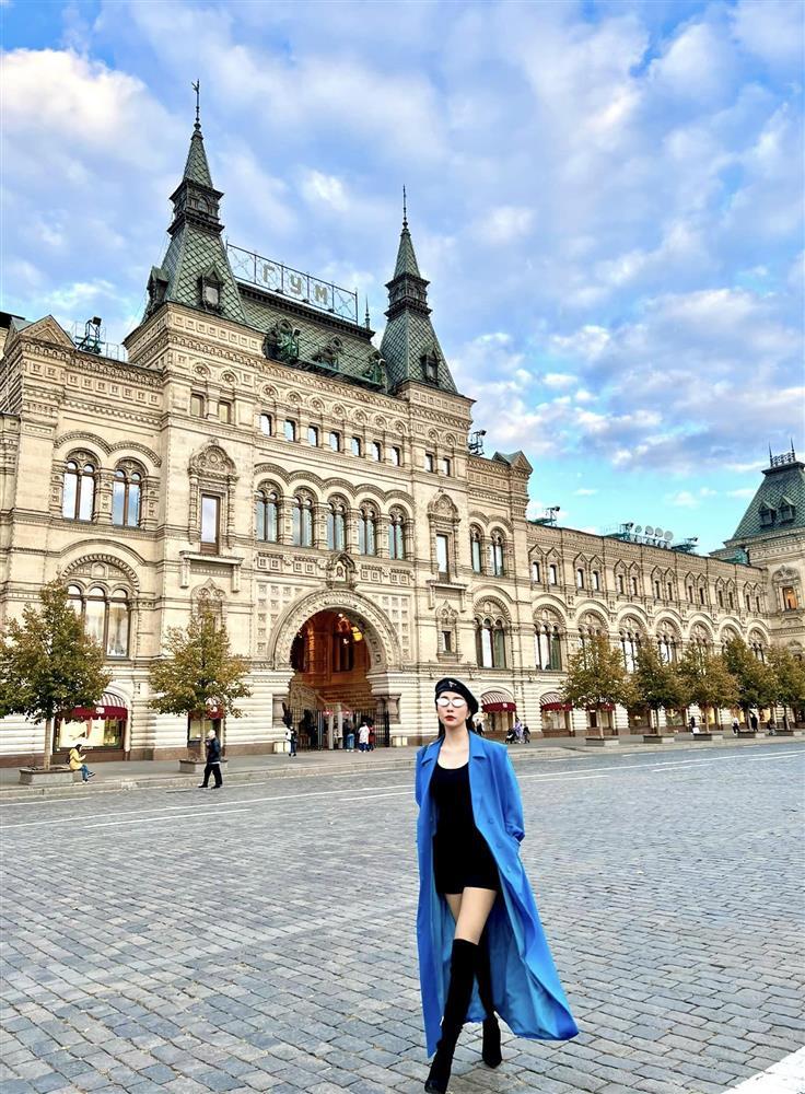 Sau thời gian bận rộn với nhiều dự án phim truyền hình, Quỳnh Nga đang có chuyến đi Nga hơn nửa tháng. Đặt chân đến xứ Bạch dương, nữ diễn viên chuyển từ phong cách sexy quen thuộc sang kín đáo hơn hẳn.