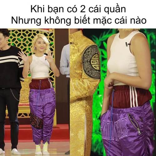 Xuất hiện tại một chương trình truyền hình, Quỳnh Anh Shyn khiến ai nấy vừa cảm thấy khó chịu, vừa thấy hài hước với chiếc quần 2 cạp lạ lùng.