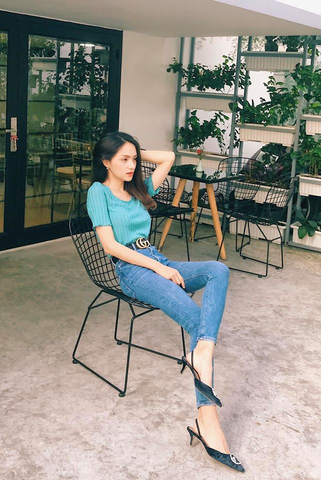 Set đồ đơn giản với áo phông cùng quần jeans lộ vóc dáng gầy xanh xao, Hương Giang khiến fan không khỏi lo lắng cho vóc dáng hiện tại của cô.
