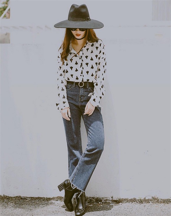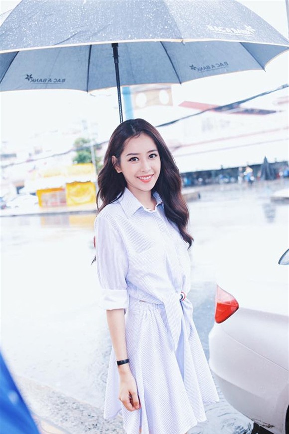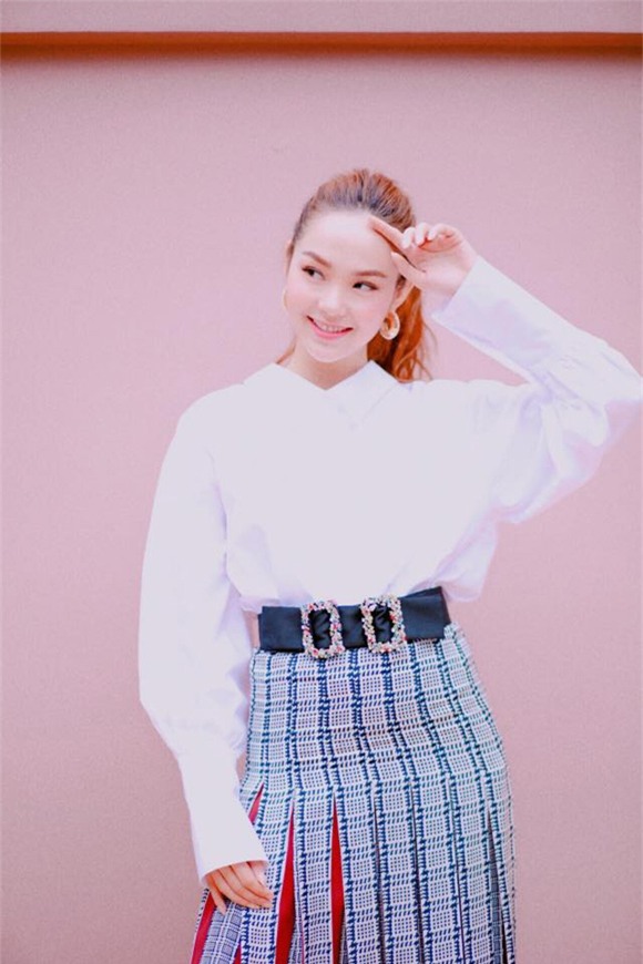 Minh Hằng luôn mang đến hình ảnh street style đẹp mắt và thời thượng. Áo sơ mitrắng kết hợp chân váy họa tiết và thắt lưng tạo điểm nhấn khiến cô đầy ấn tượngvà chất.
