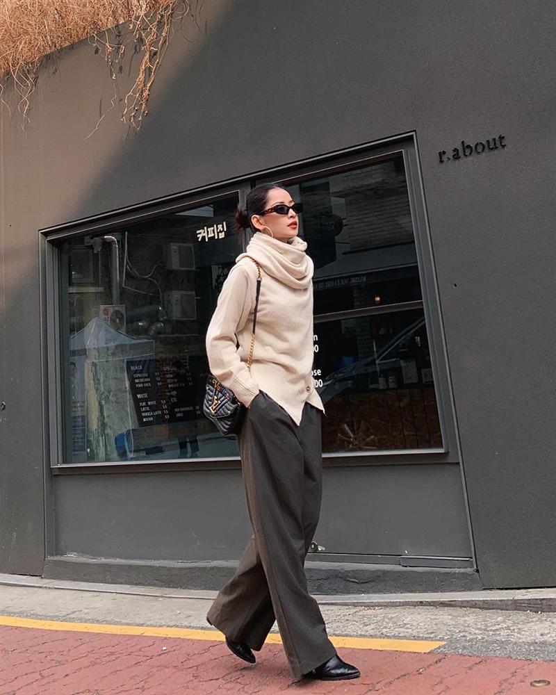 Không sexy phóng khoáng như mọi lần, Chi Pu kín cổng cao tường với áo len cổ lọ cùng quần ống rộng chạm gót chân.