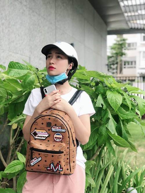 Đội mũ bảo hiểm, đeo khẩu trang y tế, ba lô ngược cùng với gương mặt thất thần, Hòa Minzy khiến fans không thể nhịn cười.