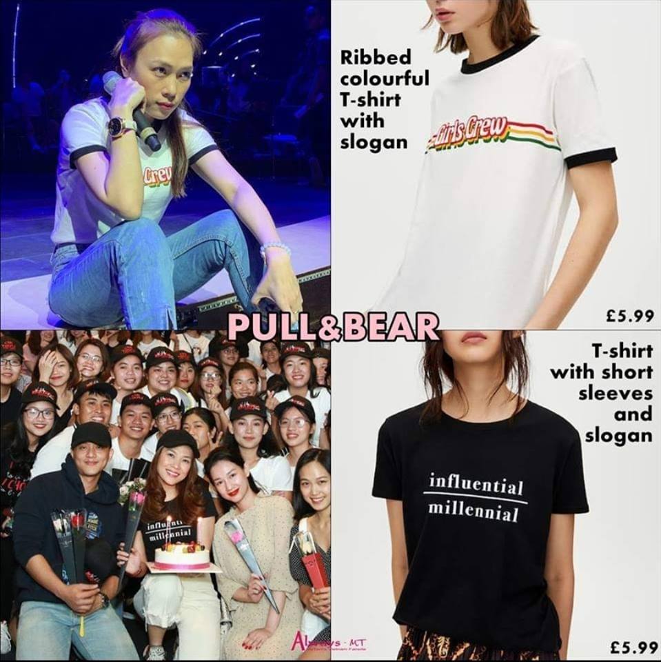 Những chiếc áo phông từ thương hiệu bình dân Pull&bear có giá khoảng 200 nghìn đồng được Mỹ Tâm cực kì ưa chuộng.