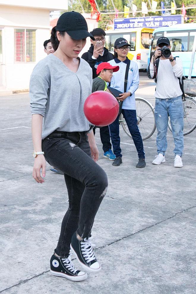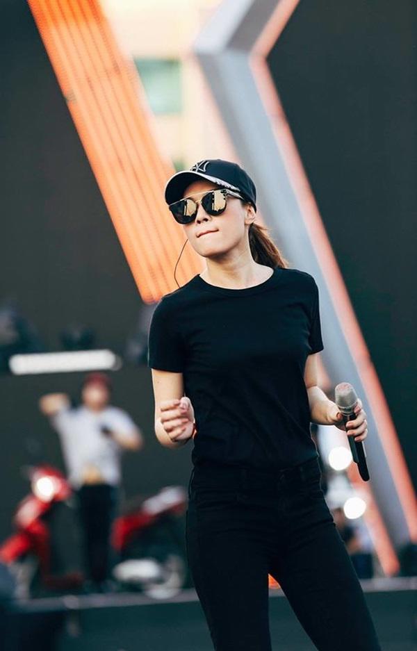 Nữ ca sĩ thường kết hợp áo phông với quần jeans và giầy sneaker khỏe khoắn. Đôi giầy Fila này có giá khoảng 2,8 triệu đồng.