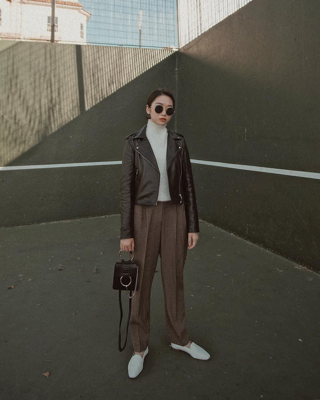 Vẻ ngoài của các nàng sẽ thời thượng và "chất" hơn vài bậc nếu nhấn nhá cho set đồ bằng một chiếc áo khoác da. Và với phom dáng ngắn, gọn gàng, áo khoác da còn giúp tổng thể trở nên cao ráo và thon gọn hơn hẳn đấy!