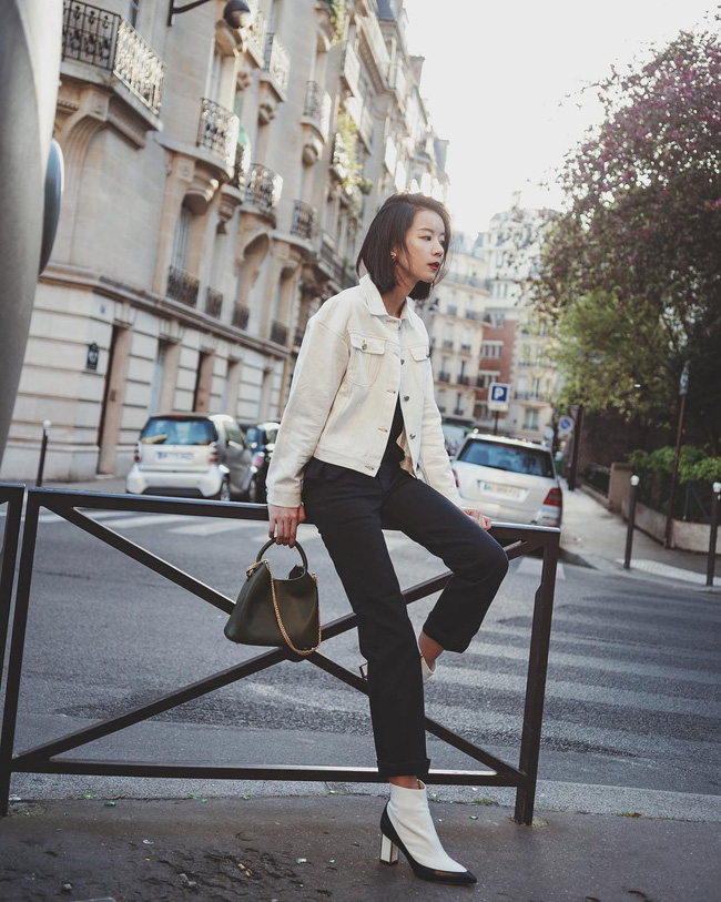 Cách "hack" tuổi hiệu quả nhất vẫn là tô điểm cho set đồ đơn giản với một chiếc áo khoác denim trẻ trung, sành điệu.