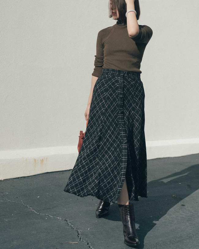 Tất nhiên, vào những ngày lạnh trời, các nàng vẫn có thể trưng dụng triệt để những chiếc chân váy đậm chất nữ tính, đặc biệt là khi mang chất liệu vải dạ dày dặn rồi mix&match cùng áo len và boots thấp cổ.