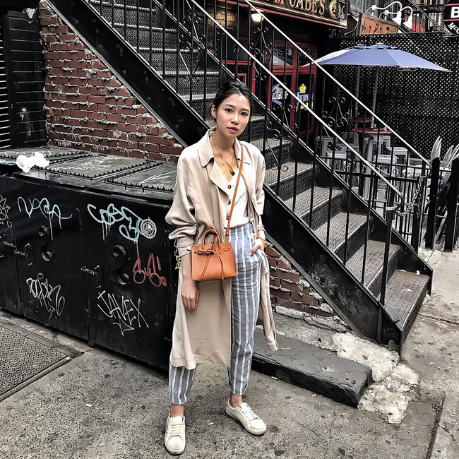 Vào những ngày thời tiết không quá lạnh, các nàng có thể tận dụng những items mùa hè, rồi khoác ngoài áo trench coat nhẹ nhàng. Set đồ này không chỉ đủ ấm, thoải mái mà còn rất phong cách nữa!
