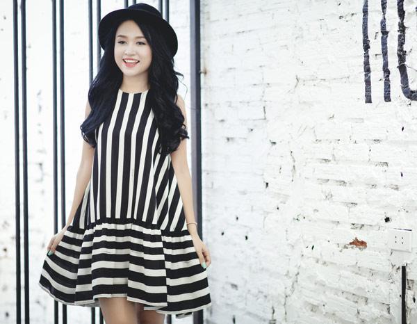 Khánh My là một người mẫu cô sở hữu thân hình khá chuẩn mực, thế nhưng đôi lúc vòng 2 lại không được săn chắc như mong muốn. Cách tốt nhất hãy khéo léo che đậy bằng một chiếc váy suông phom chữ A tông màu nổi bật này, để tổng thể trở nên hoàn hảo hơn.