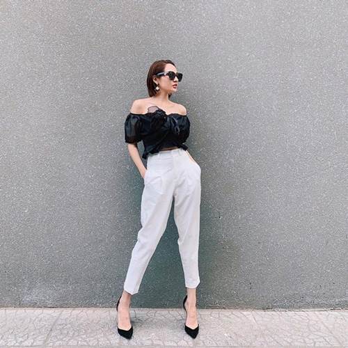 Từ khi cắt tóc ngắn, người đẹp thường xuyên lựa chọn những trang phục mang hơi hướng tomboy.