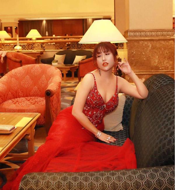 Ở một sự kiện khác, "nữ hoàng dao kéo" tiếp tục trung thành phong cách phô trương vòng 1 trong chiếc đầm hai dây cổ khoét sâu. Không những thế, cô còn để lộ vòng 2 ngấn mỡ.