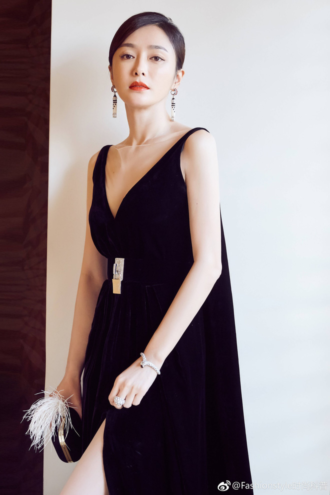 Váy nhung màu đen vốn dễ khiến người diện bị “dừ” đi vài phần, thế nhưng nhờ vào nhan sắc xinh đẹp, nước da trắng mịn và sắc vóc chuẩn chỉnh mà Tần Lam đã diện đẹp mẫu váy này. Thậm chí thiết kế này chỉ càng tôn lên nhan sắc mặn mà, quý phái ở tuổi 37 của “Phú Sát Hoàng hậu”.