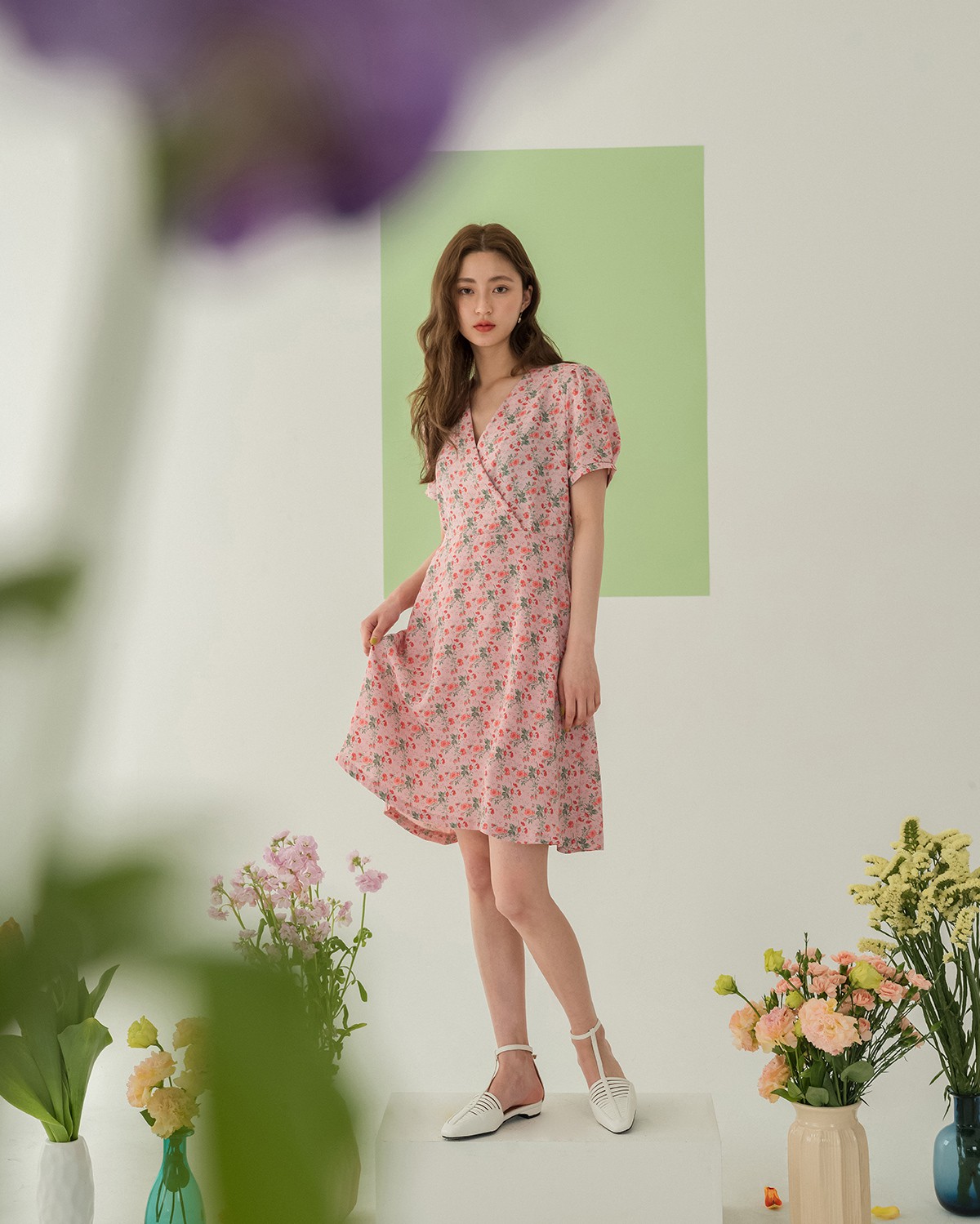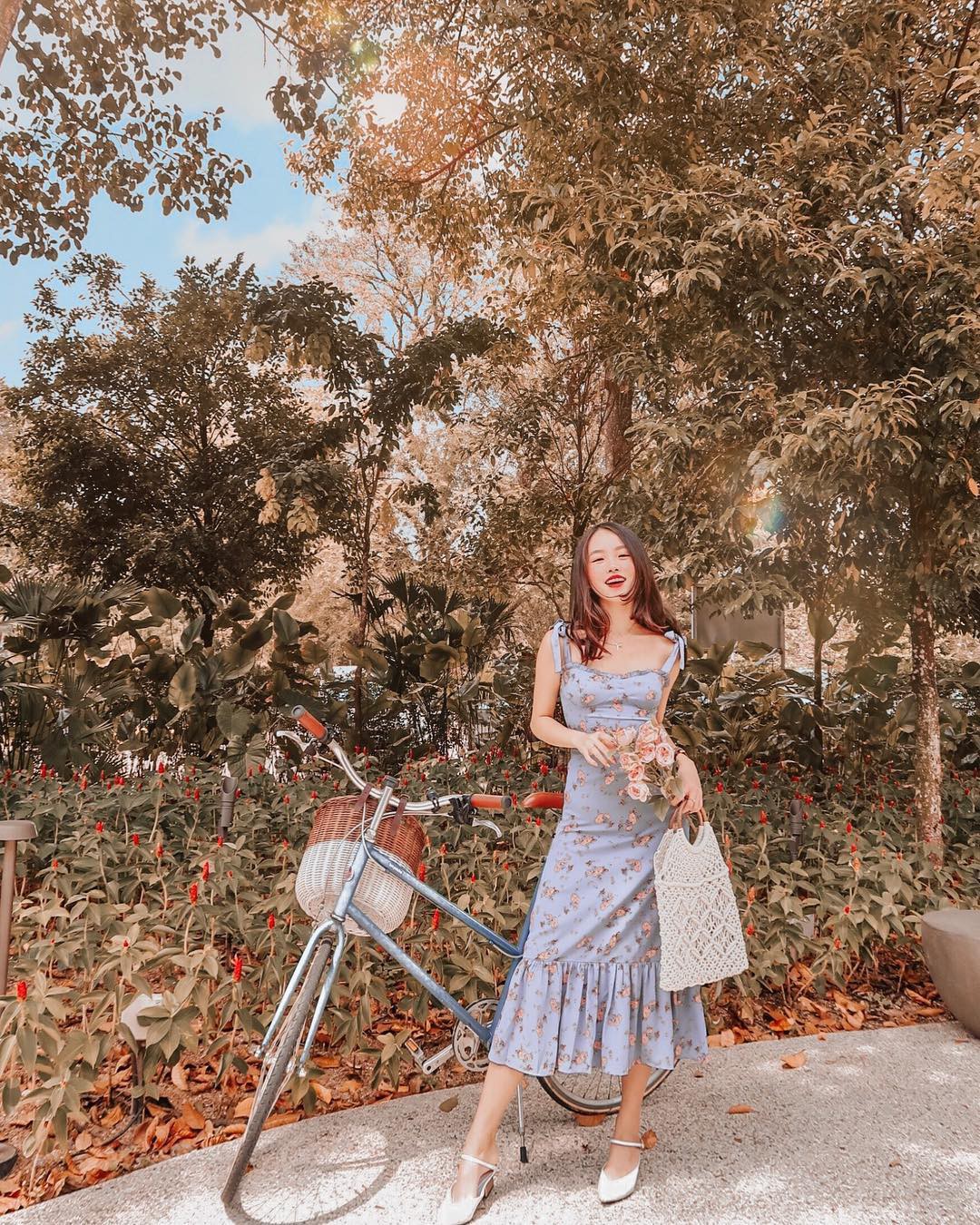Điểm cộng nữa của váy hoa midi chính là khả năng giấu nhược điểm đôi chân và tôn dáng, đặc biệt là khi bạn chọn những mẫu váy nhấn eo, độ dài đến bắp chân thì chiều cao sẽ được cải thiện trông thấy, vóc dáng còn thêm phần thon gọn.