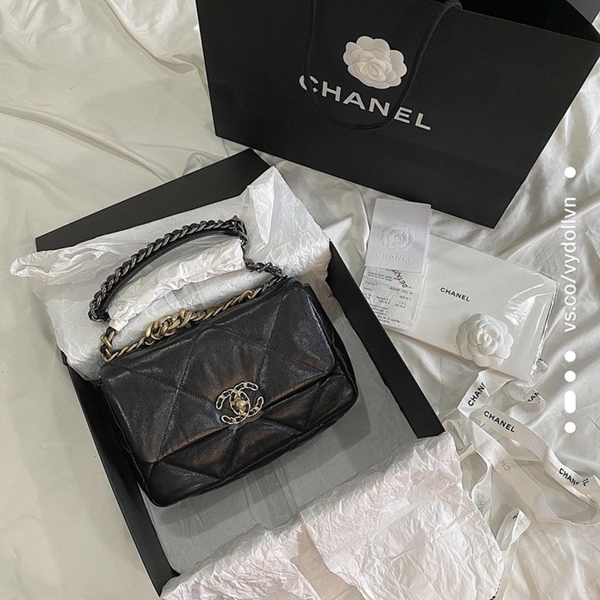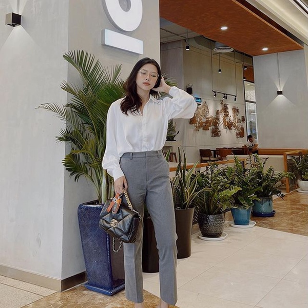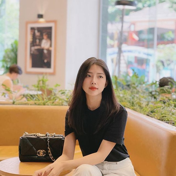 Với thiết kế túi Chanel đen sang trọng quý phái này, Khánh Vy diện một set đồ công sở kín đáo thanh lịch hoặc nếu không cũng là một combo quen thuộc với áo phông + quần vải