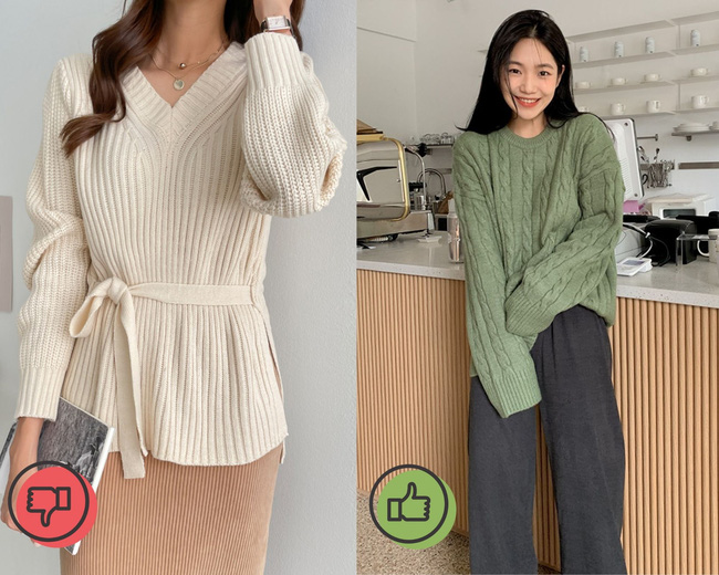 Áo len thắt eo không xấu, nhưng cũng chẳng phải là một item đáng đầu tư trong mùa lạnh. Dân sành điệu đã không còn diện áo len nhấn eo nữa và trên thực tế, mẫu áo này cũng có thể khiến vẻ ngoài trở nên tẻ nhạt, đứng đắn quá hóa "già nua". Để vẻ ngoài trông hiện đại và thời thượng hơn, chị em tốt nhất là nên chọn áo len dáng oversized. Nếu có thêm những chi tiết như cổ chữ tim, cổ bẻ hoặc mang gam màu trầm, mẫu áo còn cho hiệu ứng thu gọn vóc dáng tốt, mà trông vẫn sành điệu, phóng khoáng.