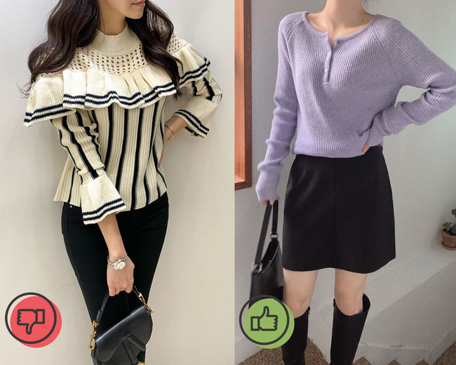 Áo len quá điệu đà luôn là món thời trang chị em cần cân nhắc thật kỹ trước khi "xuống tiền". Đặc biệt là đối với áo len có chi tiết bèo nhún, chị em tốt nhất nên "né" xa. Mẫu áo này trông sến và có thể cộng tuổi cho người mặc. Khi chọn mua áo len, chị em vẫn nên ưu tiên những kiểu áo đơn giản, phom dáng suông, diện lên hợp thời trang, và dễ hoàn thiện những bộ đồ đẹp từ công sở ra phố.