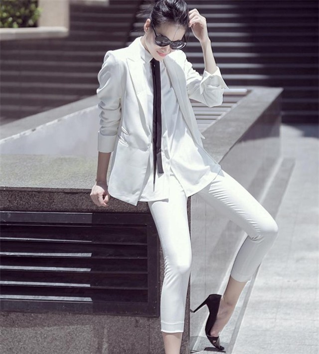 Thanh Trúc chọn mẫu sơ mi trắng thắt nơ khi mix kèm cả cây vest trắng nữ tính, duyên dáng.