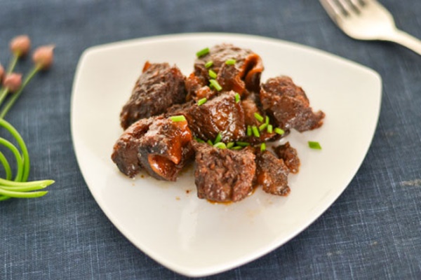 - Cuối cùng đậy nắp, rim thịt bò trên lửa vừa trong 15 phút cho đến khi thịt bò chín mềm là được.