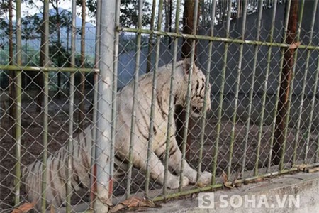 Hổ trắng được nuôi dưỡng tại khu du lịch sinh thái Trại Bò khá hung dữ và chồm lên khi thấy người đứng gần. |