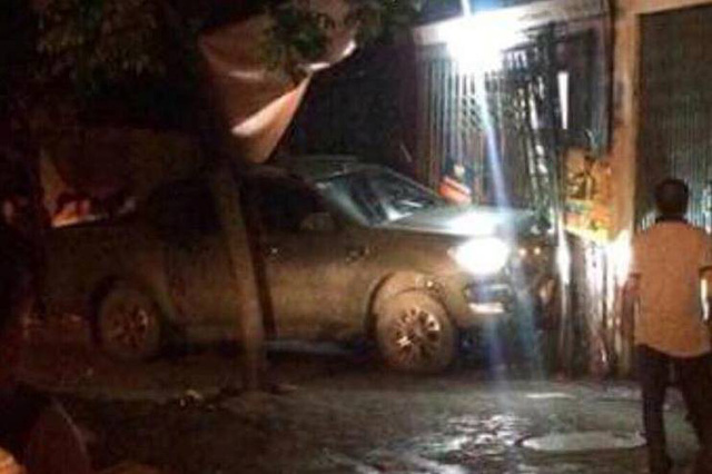 Chiếc xe ô tô bán tải của nghi phạm bỏ lại hiện trường sau khi cán lên người nạn nhân tử vong. Ảnh: Bạn đọc cung cấp