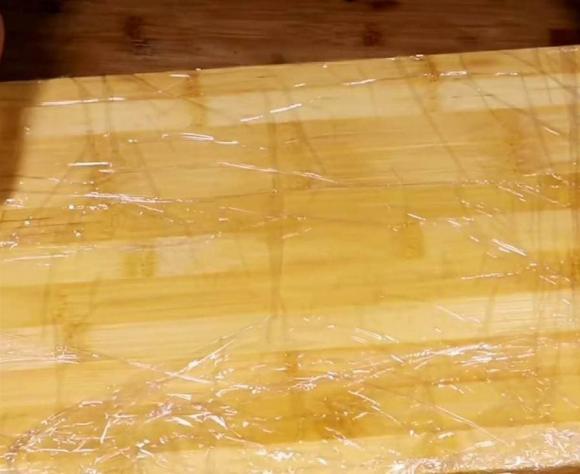 ④ Thớt đã quét dầu ăn thì dùng màng bọc thực phẩm bọc kín, thoát khí bên trong ra ngoài để dầu ăn thẩm thấu tốt hơn vào thớt, để trên kệ thoáng và mát 2 ngày, để nó hoàn toàn tạo thành một màng dầu; đợi 2 ngày để thớt thấm dầu;