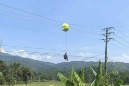 Ngày 16/6, trên mạng xã hội xuất hiện đoạn clip ghi lại cảnh 1 chiếc dù lượn gắn động cơ, có người lái bất ngờ rơi xuống biển sau khi chao đảo trên không.