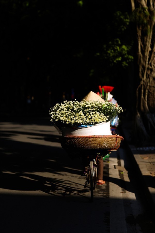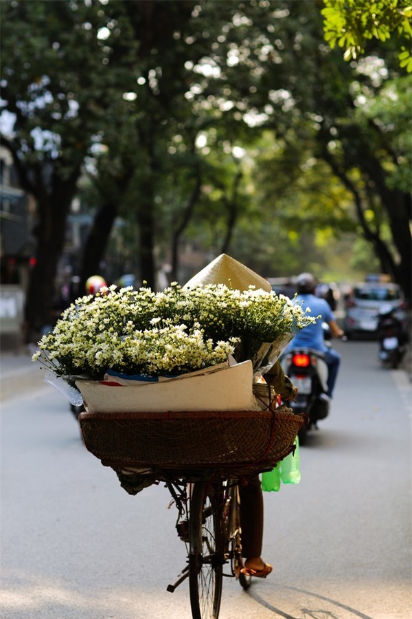 Nhìn những chiếc xe đạp dựng gọn ghẽ bên phố mang trên mình đầy hoa, người ta chợt nghĩ cái thành phố này đâu có ồn ào, có vội vã như mình vẫn biết. Hoặc giả như có bon chen, có tấp nập, thì nó cũng ở đâu đâu chứ chẳng kéo đến đây. Cánh hoa trắng muốt, lớp xếp lớp nhẹ như bông; nhụy hoa vàng hiền hòa như mặt trời của những ngày mùa đông không rực rỡ; thân hoa mềm, dịu dàng đỡ những búp họa mi cái thì nở như nụ cười duyên, cái thì còn ngại ngùng e ấp...