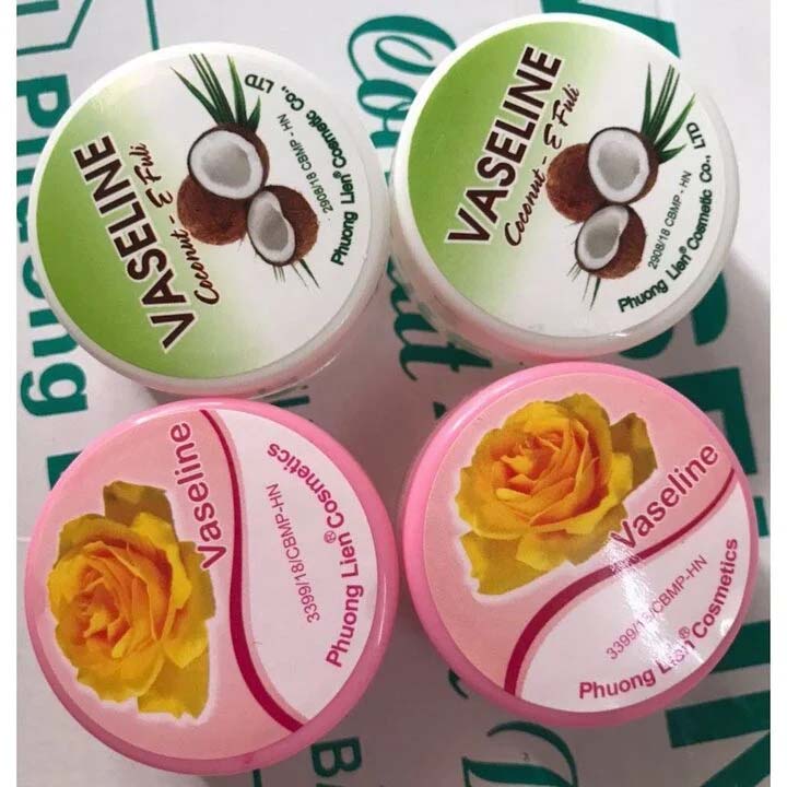 Sáp nẻ vaseline hoa hồng và vaseline dầu dừa (hộp 15g).