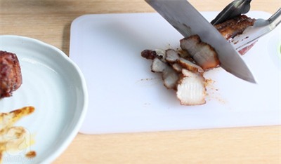 ![]() Mẹo: Thái thịt khi thịt nguội bớt để thớ thịt đẹp và thịt không bị chảy nước giữ được vị ngọt trong thịt. |