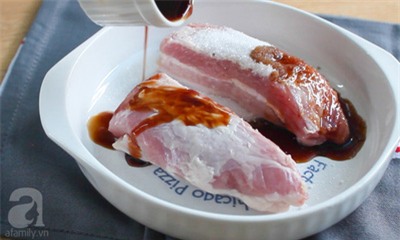 ![]() | ![]() Hòa hỗn hợp nước ướp thịt + ½ bát nước |